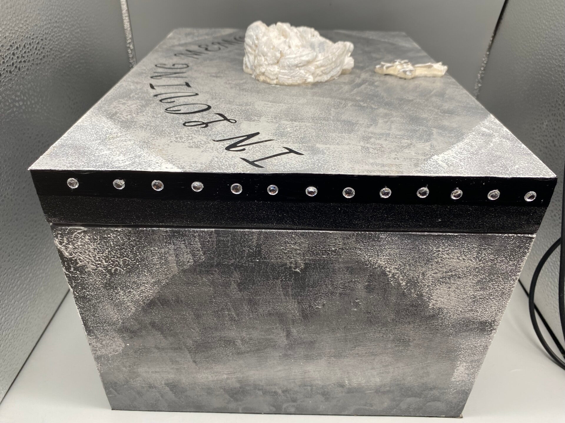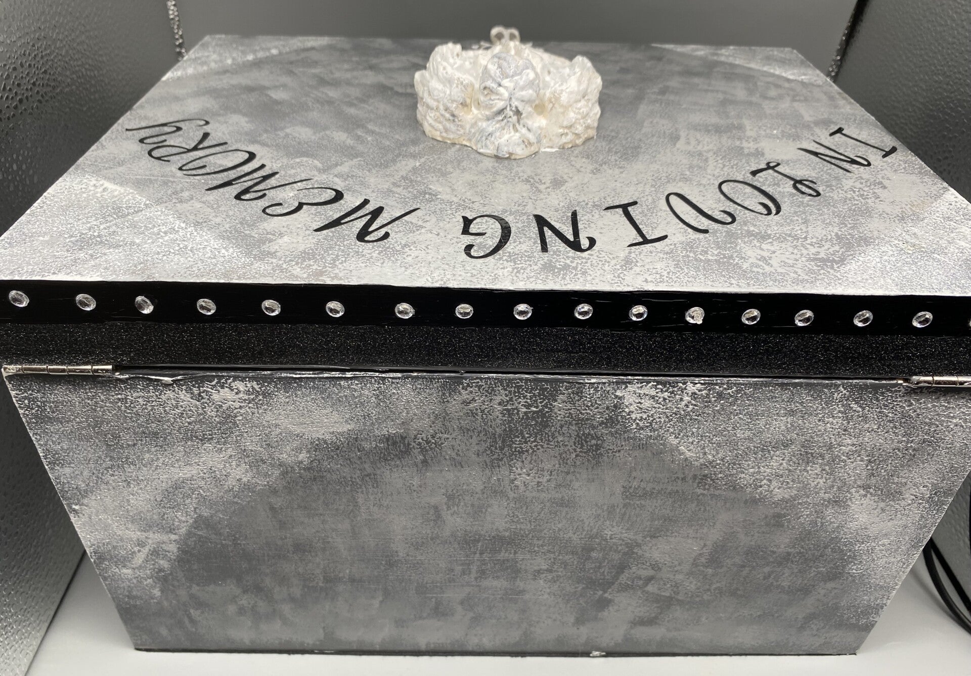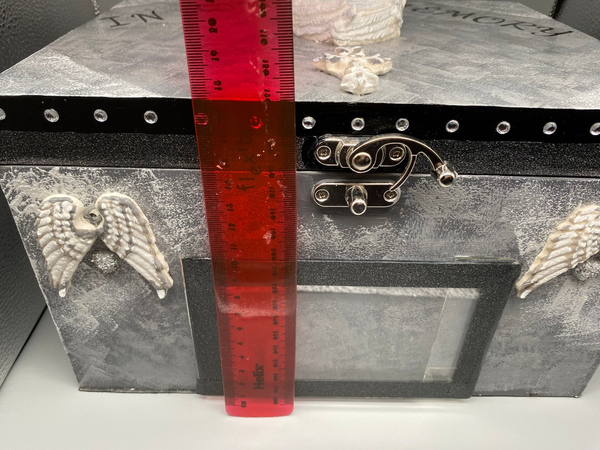 I wanted to make something that could be cherished by loved ones of someone very dear to them, or in memory of a cherished pet as they too are part of the family. This beautiful sturdy plain wood keepsake box will be decorated using acrylic paints, washi tape, flat backed plastic gemstones, and plaster of Paris hand painted and varnished Angel, and angel wings as shown. On the front of the box there will be a photo frame so that a special photo can be added. Two layers of beautiful hardwearing gloss varnish covering the whole of this keepsake box. Inside there is a layer of black velvet felt, and another layer of this on the base so it has a soft non scratch area to sit on any dry indoor surface.